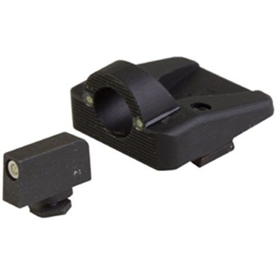 Two, green, tritium-filled vials in the rear plus a single tritium vial in the front blade provide an easy-to-find, 3-dot reference point. Mfg: Aro-Tek SPECS: Aluminum, black, matte finish, with green tritium inserts. +0 .180" high front blade, fits Glock 17, 19, 22, 23, 24, 34, 35. +1 .160" high front blade, fits Glock 20, 21, 26, 27, 28, 29, 30, 31, 32, 33, 36. Includes screws, Allen wrench and instructions.