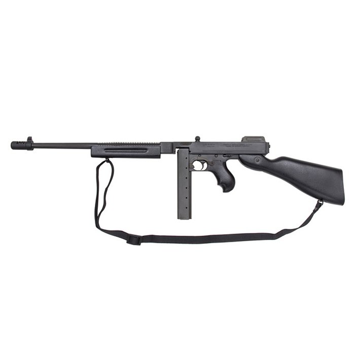 The Auto Ordnance Commando Thompson Carbine features parkerized metal and an all wood stock, rear grip and horizontal forend in a durable black finish. With the same hard hitting .45 ACP, features and quality of the Auto Ordnance 1927 A1 deluxe model, it comes complete with a 20 round magazine and black nylon sling.