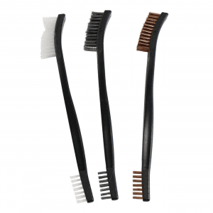 Birchwood casey utility brushes come in a 3 pack with different style brush ends. Nylon brush: use on delicate blueing and engraving. Bronze brush – ideal for tough deposits. Stainless brush – use for the toughest removal of deposits.Features:Pack of 3 utility brushes