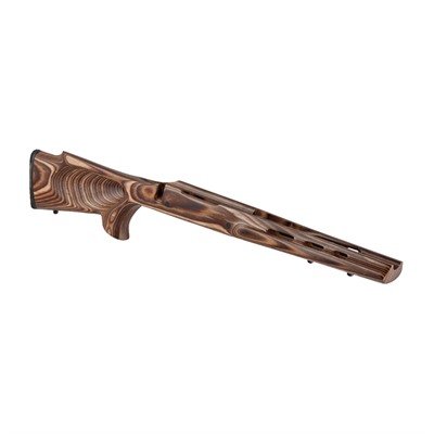 Featherweight Thumbhole Remington 700 ADL Long Action Factory Barrel Channel in Nutmeg Laminate The FT’s design is a synthesis of design elements requested by you, the customer, for a thumbhole design. With a large rollover cheek piece for scope usage and straight comb design to minimize cheek slap when shooting, the hand conforming thumbhole allows for increased accuracy while distributing the recoil among the palm and shoulder thus minimizing muzzle jump and felt recoil. The forend is proportioned to nicely complement barrels from 21 inches to 25 inches in length and will accommodate barreled actions with standard sporter contour barrels. Larger barrels up to a tapered varmint Mfg: Boyds