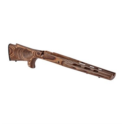 Featherweight Thumbhole Ruger 77 MKII Long Action Factory Barrel Channel in Nutmeg Laminate The FT’s design is a synthesis of design elements requested by you, the customer, for a thumbhole design. With a large rollover cheek piece for scope usage and straight comb design to minimize cheek slap when shooting, the hand conforming thumbhole allows for increased accuracy while distributing the recoil among the palm and shoulder thus minimizing muzzle jump and felt recoil. The forend is proportioned to nicely complement barrels from 21 inches to 25 inches in length and will accommodate barreled actions with standard sporter contour barrels. Larger barrels up to a tapered varmint Mfg: Boyds