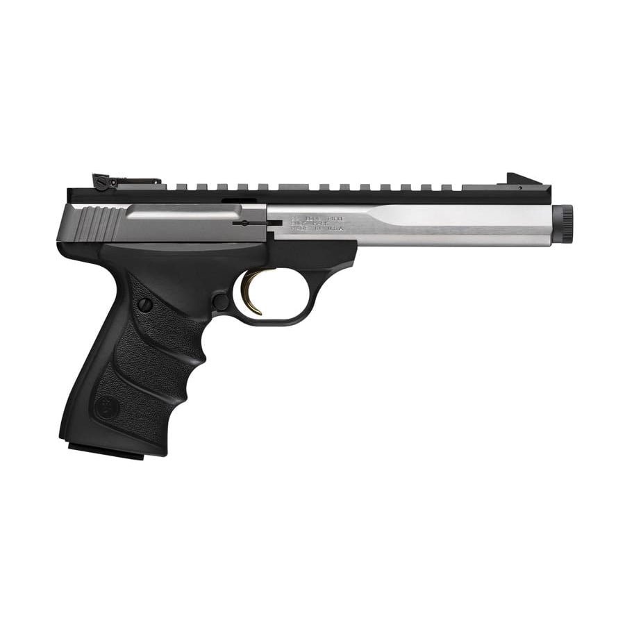Experience unparalleled accuracy with the Buck Mark Contour Stainless, SR. Boasting a precision-engineered 5.9 inches special contour stainless steel barrel, this pistol ensures stability and enhanced accuracy shot after shot. Ready for suppressor use, it features 1/2-28 muzzle threads with a included thread protector. The Ultragrip RX (URX) ambidextrous grips provide exceptional comfort and are perfectly sized to accommodate various hand-sizes, ensuring a secure and ergonomic shooting experience. Ideal for shooters who demand reliability and pinpoint accuracy, the Buck Mark Contour Stainless, SR sets the standard for performance and versatility in pistol design.
