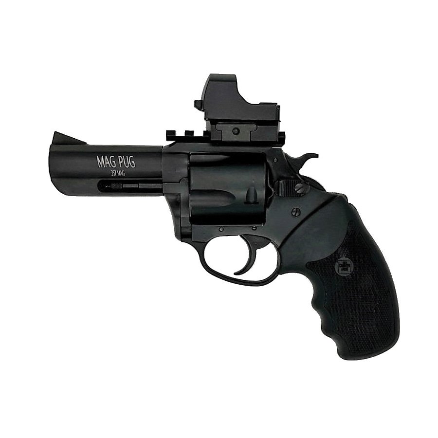 The Charter Arms Mag Pug stands out as a compact yet potent revolver designed for home protection. built with a durable stainless steel frame and outfitted with a full-size black rubber grip, it offers a secure and comfortable shooting experience. The revolver is equipped with a micro optic sight, enhancing accuracy and target acquisition in critical situations. Ideal for those prioritizing reliability and ease of use, the Mag Pug excels as a formidable choice for personal defense.