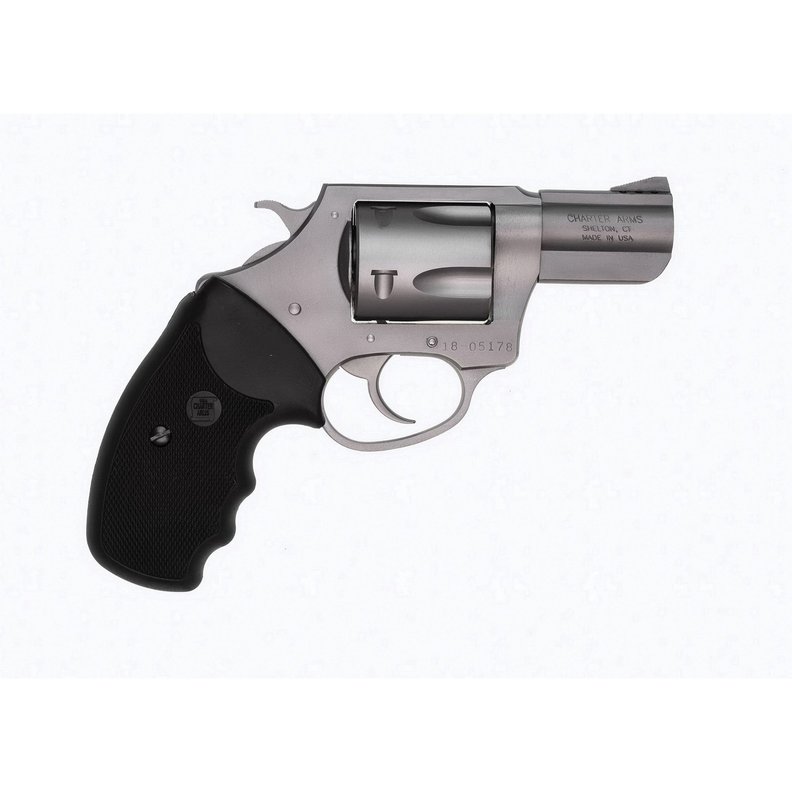 Charter Arms' .357 Mag Pug is a home protection revolver second to none. Compact, yet extremely powerful, the 5-shot Mag Pug features a ported 2.2 inches barrel and fixed sights. The Mag Pug weighs in at 23 oz and features a traditional spurred hammer and full-size grips. This .357 has the stopping power to dispatch any and every threat to your home and family. Arm yourself with confidence. Target model also available with a 4 inches barrel and adjustable rear sight.