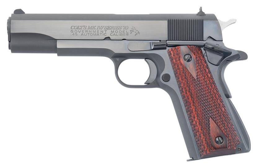 The legacy of the Colt Government Model is well known. From the battlefields of Normandy, to the jungles of Vietnam, this combat proven firearm has tirelessly served our Armed Forces for more than a century. This pistol features the legendary Series 70 firing system, making it a faithful reproduction of Government Models manufactured prior to World War II. This pistol also features an arched steel mainspring housing and a short steel trigger. A standard safety lock, standard grip safety and spur hammer complete this authentic throwback to Colt semi-automatics of days gone by.