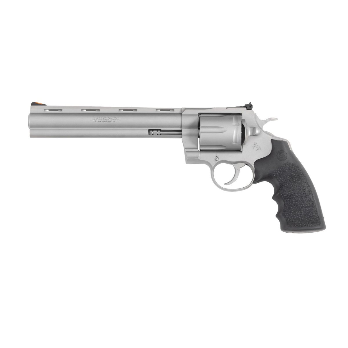 Colt's legendary Snake Gun revolver Series expands with the updated Anaconda, a powerhouse built for strength, precision and reliability. Fully redesigned with an oversized Python action, this .44 Magnum revolver features a solid stainless steel frame with a durable matte finish, ensuring long-lasting performance in any environment. The linear leaf spring action delivers an incredibly smooth, non-stacking trigger pull for enhanced accuracy and control. Recoil-absorbing Hogue grips provide a comfortable and secure hold, while adjustable and interchangeable sights allow for quick target acquisition. A recessed target crown protects the barrel and the frame is drilled and tapped for optics, making the Anaconda a top choice for both range shooting and hunting.
