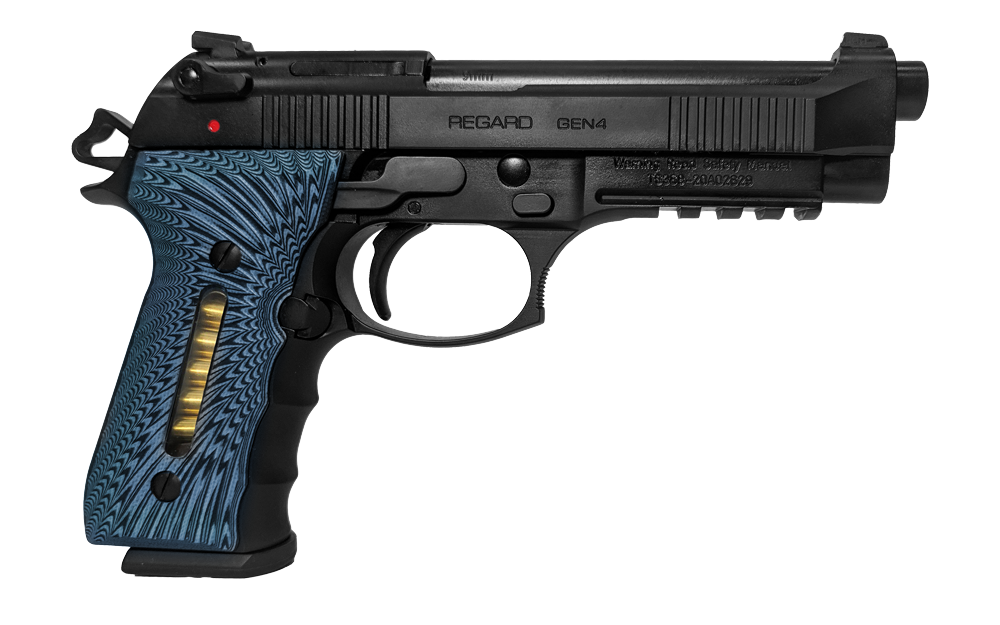 Taking the famous Regard model further by creating two models geared towards competition shooting, EAA introduces the Regard Sport Gen 3 and Gen 4. Stylish G10 grips standout off the blue/black steel slide and light weight alloy frame. Choose from either the safety on the frame (Gen 3) or safety on the slide (Gen 4) to meet your needs. Both come equipped with an accessory rail, Window Grip and Window Magazine and are available in 9mm caliber. The Gen 4 Decocker rebounds for fast return to action.#html-body [data-pb-style="62DF828960FA8"]{justify-content: flex-start; display: flex; flex-direction: column; background-position: left top; background-size: cover; background-repeat: no-repeat; background-attachment: scroll; border-style: none; border-width: 1px; border-radius: 0px; margin: 0px 0px 10px; padding: 10px;}#html-body [data-pb-style="62DF828960FB4"]{border-style: none; border-width: 1px; border-radius: 0px; margin: 0px; padding: 0px;}