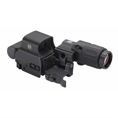 Regardless of the scenario this HHS provides an unparalleled advantage when transitioning from short to long range shooting. The EXPS2-2 offers true 2 eyes open shooting, a transversly mounted lithium 123 battery, 7 mm raised base offering iron sight access, and easy to adjust side buttons. The G33 3x magnifier with switch to side mount provides superior light transmission and the large field of view puts the competition to shame. Both units offer an adjustable, locking, quick detach lever for easy attachment and removal. 3x magnifier with Switch-To-Side mount works with all existing HWS units. Reticle is a 65MOA circle with two 1MOA aiming dots Singl Mfg: Eotech SPECS: EXPS2-2: Optics: Transmission holography – parallax free Magnification: 1x Eye Relief: Unlimited COMBINED Length/Width/Height: 8.1"x 2.2"x2.8" (206 x 55.9 x 71.1mm) COMBINED Weight: 23.1 oz (655 grams) Temperature: -40 to 160 F