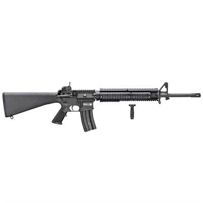 Eighteen inch button-broached, chrome-lined, alloy steel barrel with A2-style compensator. 1:7 inch right hand twist rate. A2-style front sight (F height); back up iron sight; fixed stock. Knights Armament M5 forearm with RAS adapter rail and rail adapter covers. Includes aluminum 30-round magazine. Trigger pull adjustable from 4.75 to 7.75 pounds. Mfg: Fn