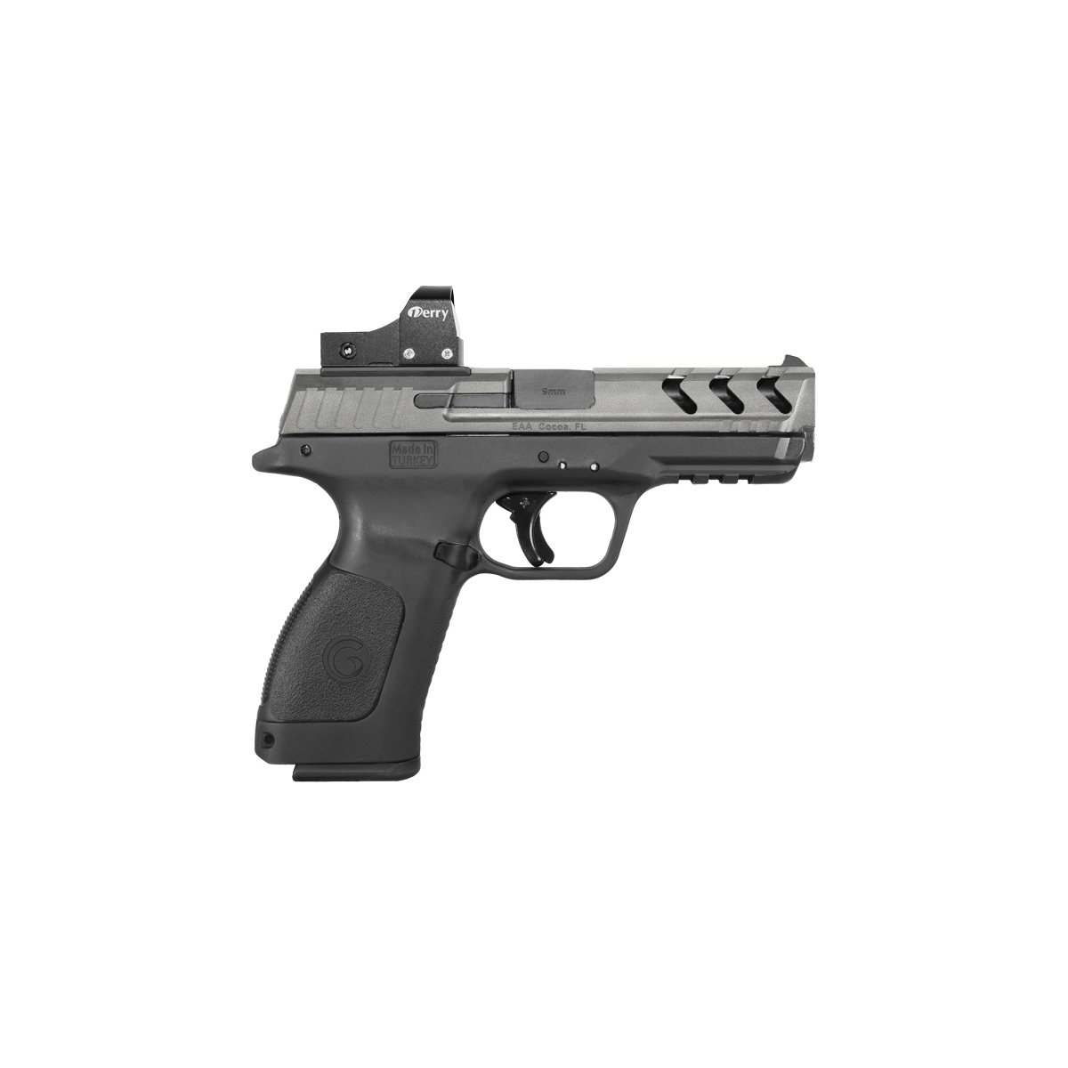 Experience the exceptional Girsan MC28SA – a striker-fire, semi-auto pistol that stands out from the crowd. This 9mm full-sized pistol boasts a unique GLOCK style low-profile frame, setting it apart from the rest. Equipped with an adjustable 3-dot sight system for precise targeting, it also features an integral trigger safety to enhance your shooting experience. The pistol's versatility is further enhanced by three interchangeable grip inserts, allowing you to customize your grip to your preference. For those seeking the advantage of optics, the MC28SA-TV introduces integral optics versions, offering carry optics at a reasonable price right out of the box. Elevate your shooting game with the Girsan MC28SA series – a blend of innovation, performance and affordability that sets new standards in the world of striker fired pistols.