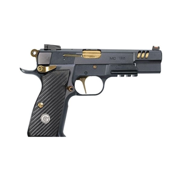 The all-steel construction of the MCP35 Negotiator delivers a remarkable shooting experience, combining durability with cutting-edge features designed for both everyday shooters and competitive marksmen. Built for performance, it includes an extended beavertail, flared magwell, fiber optic front sight and G10 grips for superior comfort and control. The straight trigger ensures a clean pull, while the beveled magwell allows for quick and smooth magazine changes. Equipped with a Picatinny frame rail for easy accessory attachment and a windage/elevation adjustable rear sight for precision aiming, this pistol is as versatile as it is reliable. The TALO edition takes it a step further, boasting a striking Titanium Nitrate finish complemented by a gold barrel, adding a touch of luxury to its already impressive design.
