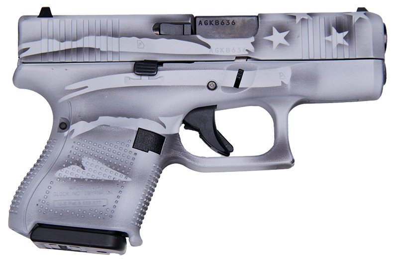 Glock G26 Gen5 9mm 3.5" 10rd Pistol, Battleship Grey Distressed Flag – UA265S204-BWFLAG