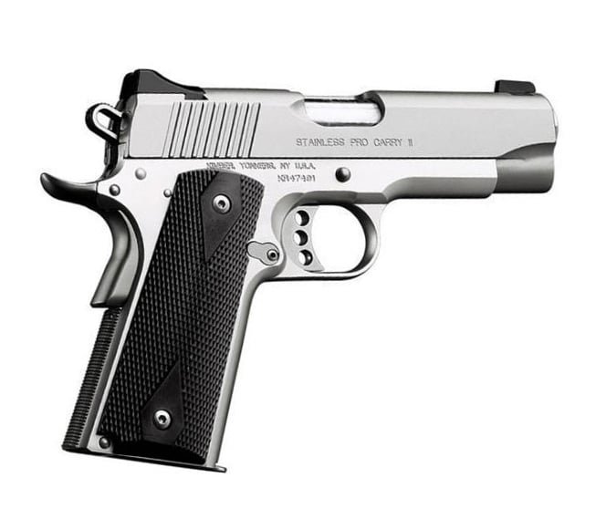 The Kimber Stainless Pro Carry II is ideal for concealed carry and personal defense. The Pro Carry II combines a 4-inch match grade carbon steel barrel with a full-length grip, giving near-perfect balance. America's best shooters choose Kimber firearms for a reason. The legendary LAPD SWAT tested five major 1911 brands and chose Kimber. United States Marines assigned to Special Operations Command also decided to chose Kimber. Finally, the U.S.A. Shooting Rapid Fire Pistol Team trains for Olympic competition with a Kimber. All of these top shooters choose Kimber for the same reason: quality, dependability, and accuracy. So should you.