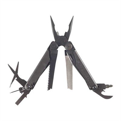 Heavy-duty, stainless steel multi-tools are perfect for the grab-and-go bag, range bag, briefcase, or vehicle glove compartment. Or carry them on your belt or MOLLE gear with the included nylon sheath. Features a fold-open, locking blade and combination needlenose/regular pliers with wire cutters, plus a saw blade, crimper, wire stripper, and bottle/can opener. The Leatherman Wave, the most popular model, features separate 3" (7.6cm) long clip-point and serrated sheepsfoot knife blades that are accessible from the outside when the tool is folded closed. Also features a Phillips driver, 1/4" (6.4mm) flat-blade screwdriver, .06" (1.5mm) eyeglass repair screwdriver, sci Mfg: Leatherman Tool Group Inc. SPECS: Stainless steel, black oxide finish. Precision-ground 420HC stainless steel knife blades, black oxide finish. 4" (10.2cm) OAL folded; 6 1/4" (16cm) OAL extended. 8.5 oz. (241g) weight. Includes instructions and black nylon sheath with belt attachment.