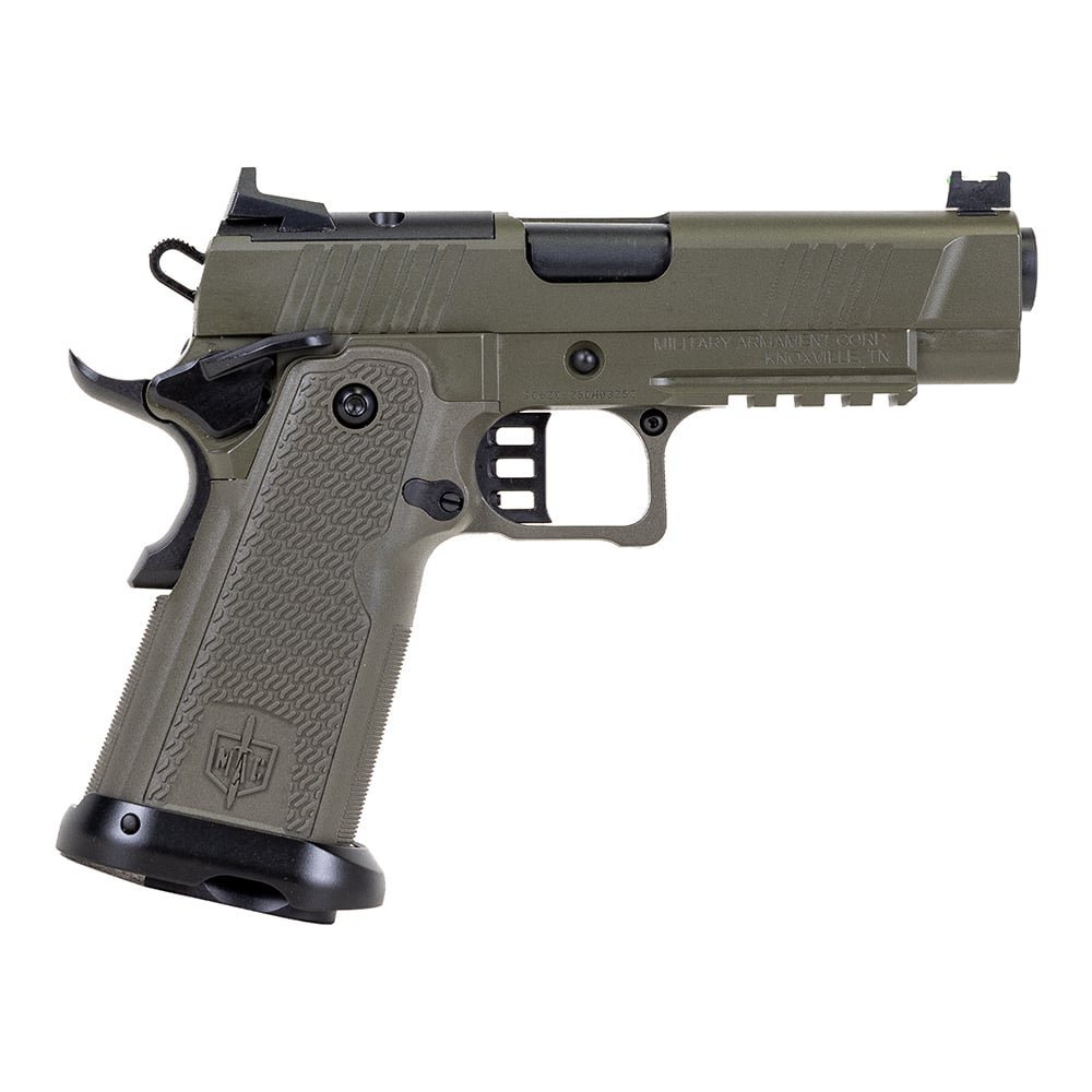 Designed by Military Armament Corporation in Knoxville, TN, and built by Tisas to our exacting standards, the MAC 1911-9 Double Stack is here! This pistol is mission-ready with a factory RMR pattern optic cut on the slide and an M1913 light rail on the frame. The polymer grip module features a grippy texture, 25 LPI checkering on the front and rear, and an aluminum removable magazine well. Chambered in 9MM, it boasts a 4.25" bull barrel with a QPQ Tennifer finish and an 11Adeg target crown, ensuring minimal recoil and maximum accuracy. The MAC Double Stack Series pistols come standard with two magazines, a cleaning kit, a bushing wrench, a trigger lock, and an instruction manual.