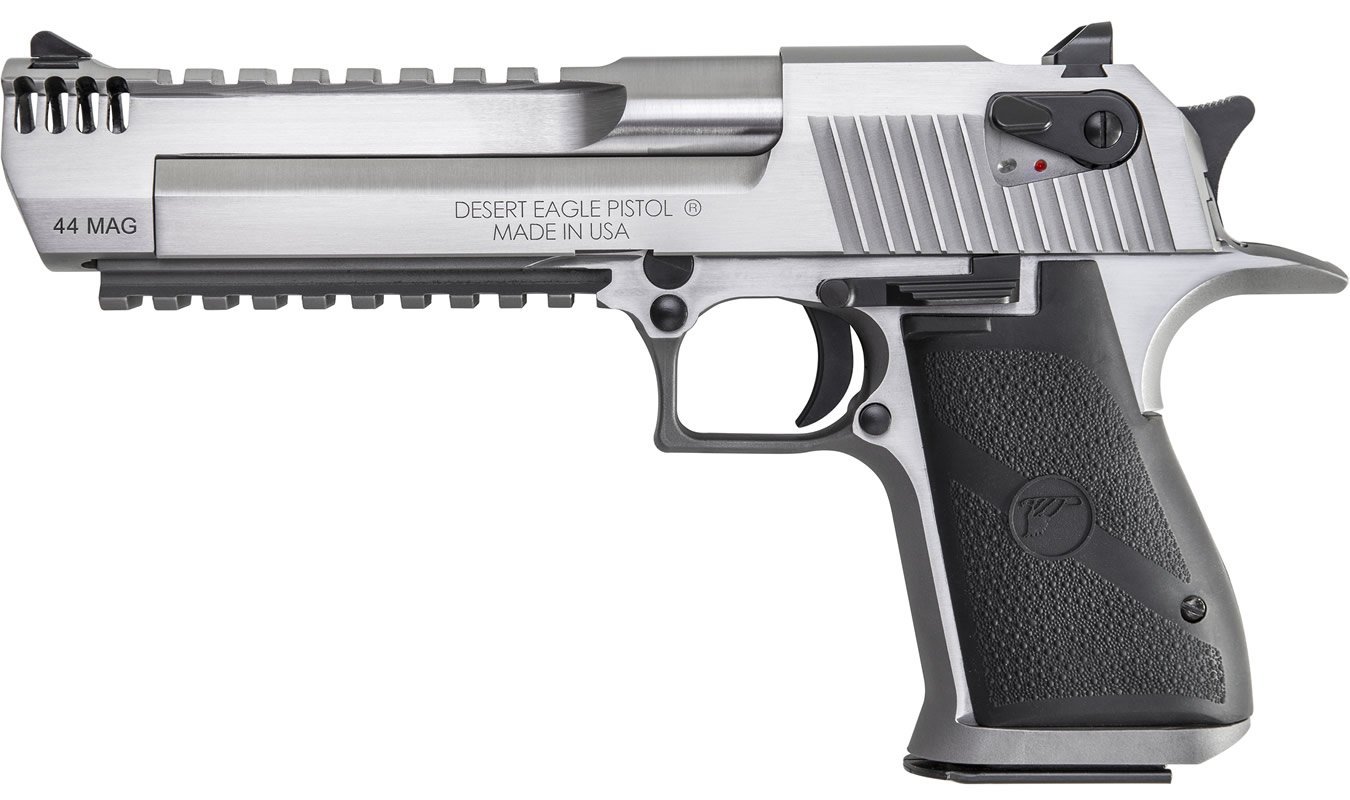 Over the past few decades the Desert Eagle has become an icon of American culture. The Desert Eagle is instantly recognizable among shooters young and old. Magnum Research has now introduced new calibers to the Desert Eagle collection to include this .44 Magnum rendition. The .44 Magnum Desert Eagle comes with a stainless steel construction and a stainless finish. The pistol features a full Picatinny rail on the top and bottom of the barrel, and integral muzzle brake and ambidextrous safety controls. With this pistol you will also have the capability to swap barrels if desired. There is something undeniably seductive about being able to control this much power and the Desert Eagle Mark XIX gives you that opportunity!