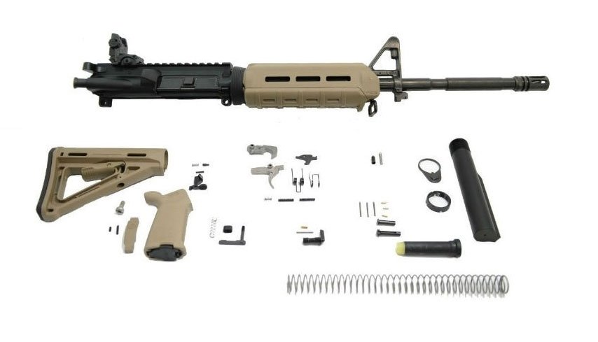 Includes Magpul MOE Stock, Pistol grip, and trigger guard, Palmetto State Armory EPT Lower Parts Kit and Mil-Spec diameter 6-position buffer tube assembly.