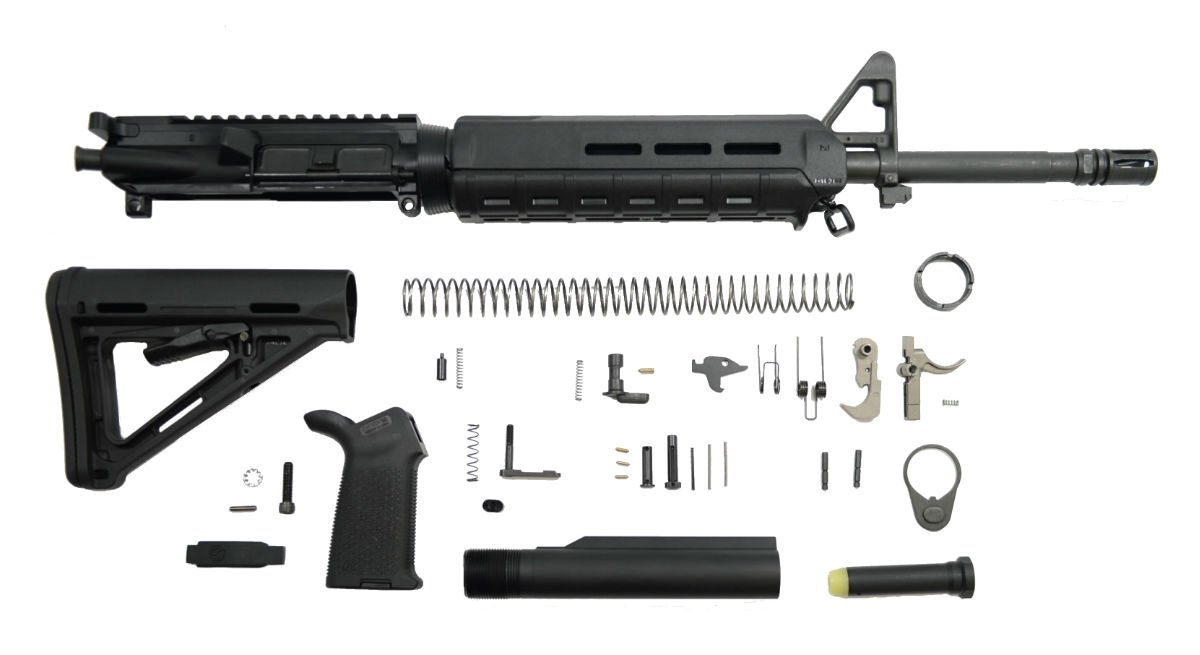 Includes Magpul MOE Stock, Pistol grip, and trigger guard, Palmetto State Armory EPT Lower Parts Kit and Mil-Spec diameter 6-position buffer tube assembly.