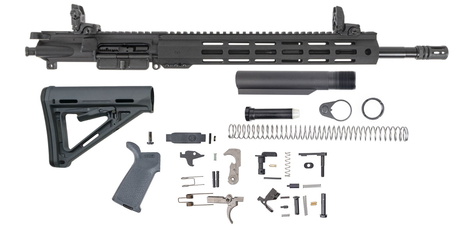 PSA 16" Mid-Length 5.56 NATO 1:7 Nitride 13.5" Hex M-Lok MOE EPT Rifle Kit With MBUS Sight Set, Gray