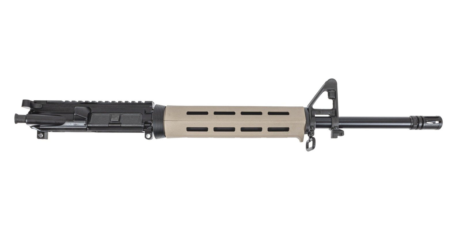 Barrel: 16" 4150V barrel length Chambered in 5.56 NATO, with a 1:7 twist, M4 barrel extension, and a mid-length gas system. This A2 profile barrel is nitrided and finished for durability. Barrel is finished off with a .750" diameter F-marked front sight base with sling swivel, B5 Systems Flat Dark Earth Handguards, and an A2 flash hider.