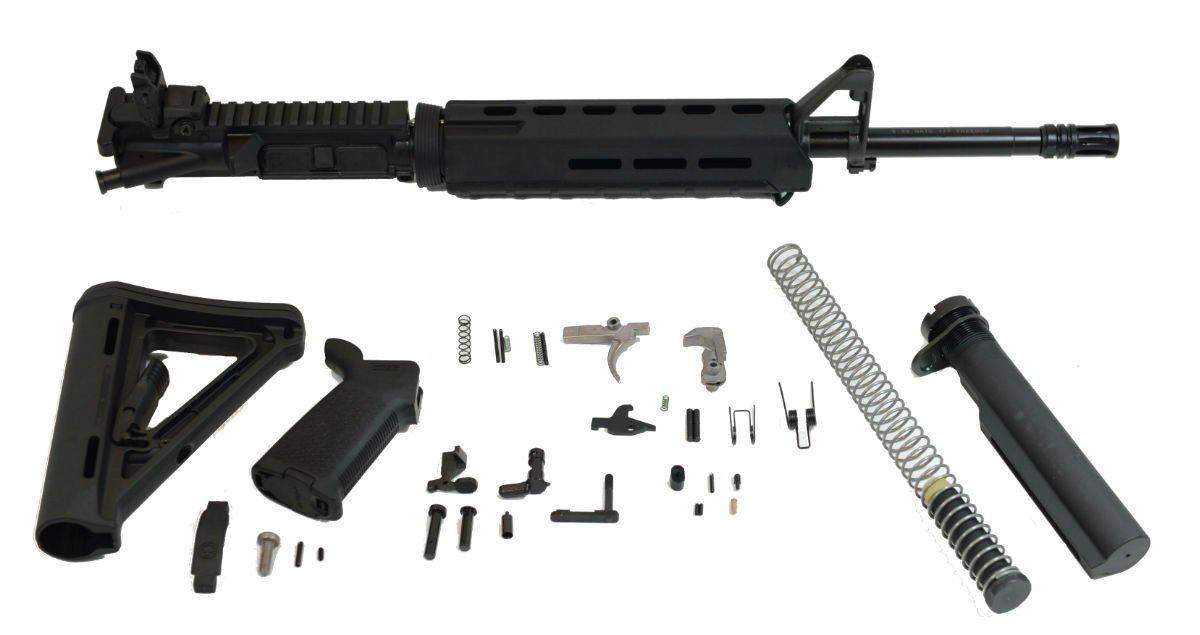 Includes Magpul MOE Stock, Pistol grip, and trigger guard, Palmetto State Armory EPT Lower Parts Kit and Mil-Spec diameter 6-position buffer tube assembly.