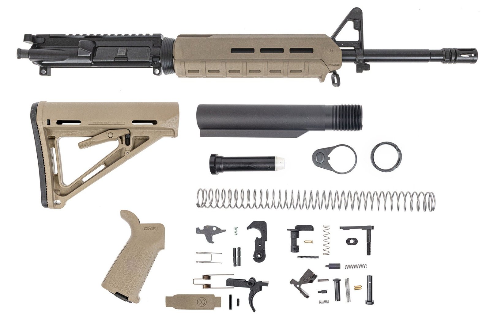 Lower Build Kit: Includes the PSA MOE FDE Lower Build Kit with MOE Carbine Stock, MOE Grip, and MOE Trigger Guard.