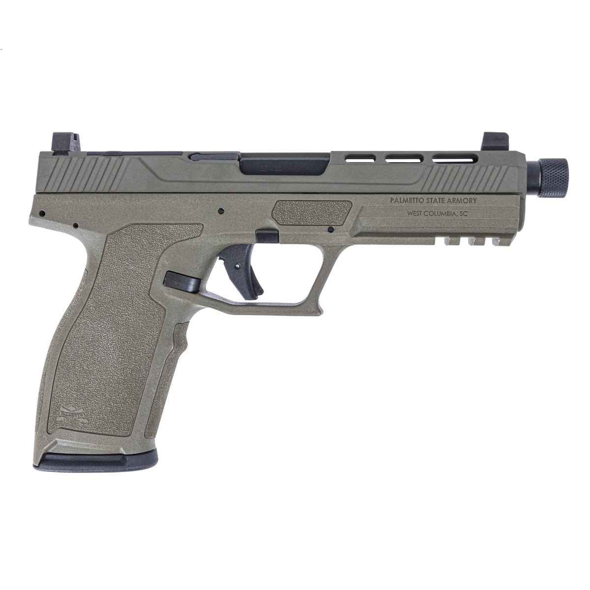A full-sized polymer-framed pistol, the PSA 5.7 Rock introduces game-changing ergonomics and controllability. This pistol is made from high-quality 416 stainless steel and advanced polymers and fulfills today's highest expectations while maintaining the unmatched Palmetto State Armory value. Chambered in 5.7x28mm, the PSA 5.7 Rock is fed from a supplied 23-round magazine and operated by a smooth single-action striker-fired trigger mechanism. The threaded carbon steel fluted barrel QPQ and 416 stainless steel slide have a Sniper Green Cerakote coating for a smooth finish that offers maximum corrosion protection to ensure longevity in the life of your pistol. This pistol is designed to work with Glock-compatible sights. The PSA 5.7 Rock RK1 Slide features optics cut positioned in front of the rear sight offering the perfect co-witness sight picture. The milled windows on the left and right sides of the slide create an enhanced look and feel, to the already distinguished design of the PSA 5.7 Rock, while also reducing the overall weight of your pistol. This 5.7 Rock optics-ready slide is cut for direct mount Shield footprint optics, excluding Leupold Delta Point Pro. Included are two adapter plates, one for RMR optics, and one for Docter cut optics. Additional Features: Ergonomic Grip Shape Aggressive Grip Texturing Striker Fired Striker Block Safety and Trigger Safety Co-Witness Sights 416 Stainless Steel Slide; Sniper Green Cerakote Coating / Optics Ready Fluted Carbon Steel Threaded Barrel With Thread Protector; QPQ Coating Polymer Sniper Green Frame 23rd Steel 5.7x28mm Magazine (2) PSA Rock Soft Pistol Case