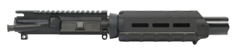 Barrel: 7" 4150V Chrome Moly vanadium steel, Phosphate treated for durability and chambered in 5.56 NATO with a 1 in 7" twist. Pistol length gas barrel is finished off with a Magpul MOE M-Lok carbine length handguard, a low profile gas block and a patent pending PSA muzzle device designed to hold the handguard endcap in place.