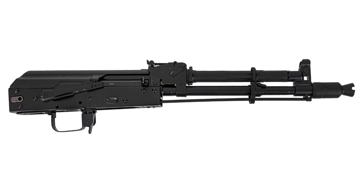 The PSA AK-104 Barreled Receiver will allow the AK purist to achieve the historical application of a short-barreled AK rifle with ease. After submitting the necessary paperwork and receiving ATF tax stamp approval, the user may swap the hinge block for a folding rifle stock by simply removing a single pin, hinge block, and dropping the folding stock into place.