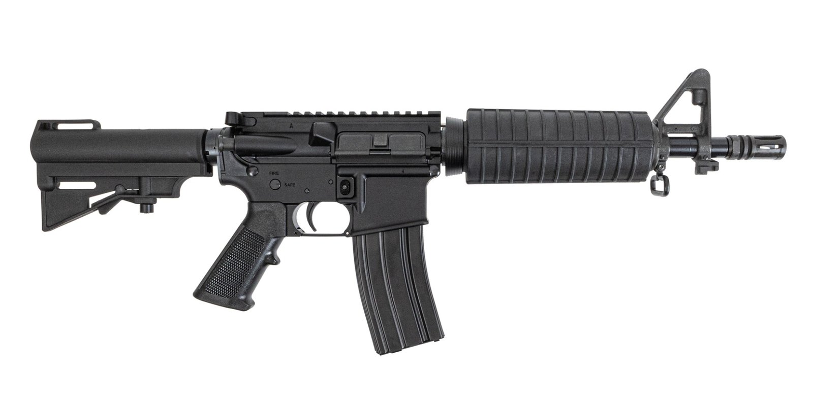 Barrel: 10.5" Chrome Moly steel Nitride coated barrel. Chambered in 5.56 NATO, with a 1/7 twist, M4 barrel extension, and a carbine-length gas system. The barrel is finished off with a classic handguard, .750 F-Marked gas sight base, and A2 flash hider.
