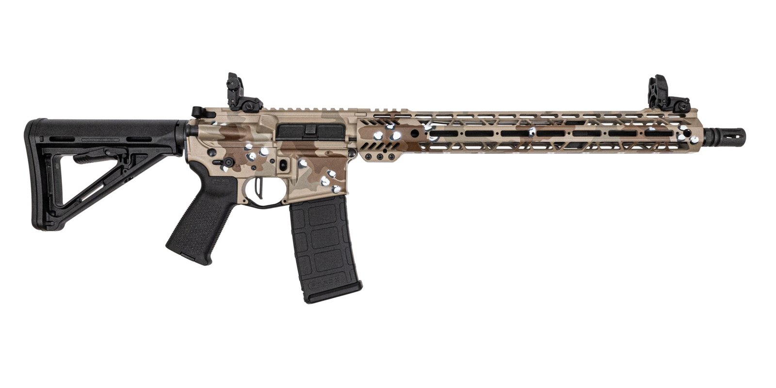 PSA Custom 16" Mid-Length Pencil 5.56 NATO 1/7 Nitride 15" LtWt Rifle W/ PSA Custom 3.5lb Flatbow FCG, Chocolate Chip