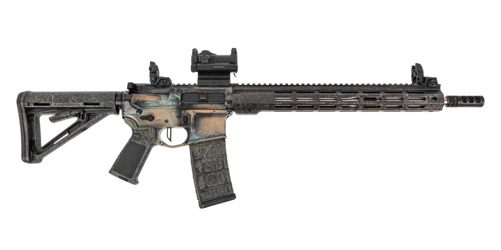 PSA Custom 16" SS 5.56 Nato Rifle W/ PSA Custom Flatbow FCG, Romoeo 7s Green Dot, Weathered Patina