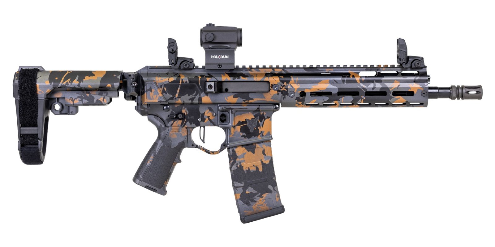 PSA Custom Jakl 10.5" 5.56 NATO 1/7 Nitride Pistol, Flat FCG, Holosun, Fall Spice Camo