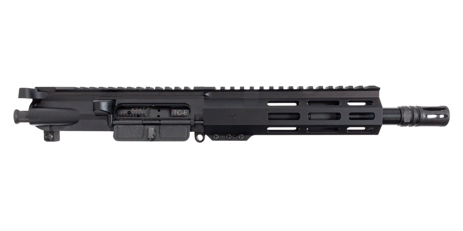 Upper: Forged 7075-T6 KS-47 upper is hard coat anodized black for durability. Featuring M4 feed ramp cuts, integrated over-insertion tabs to prevent the bolt from dragging on the magazine, and these upper receivers are made for us right here in the USA.