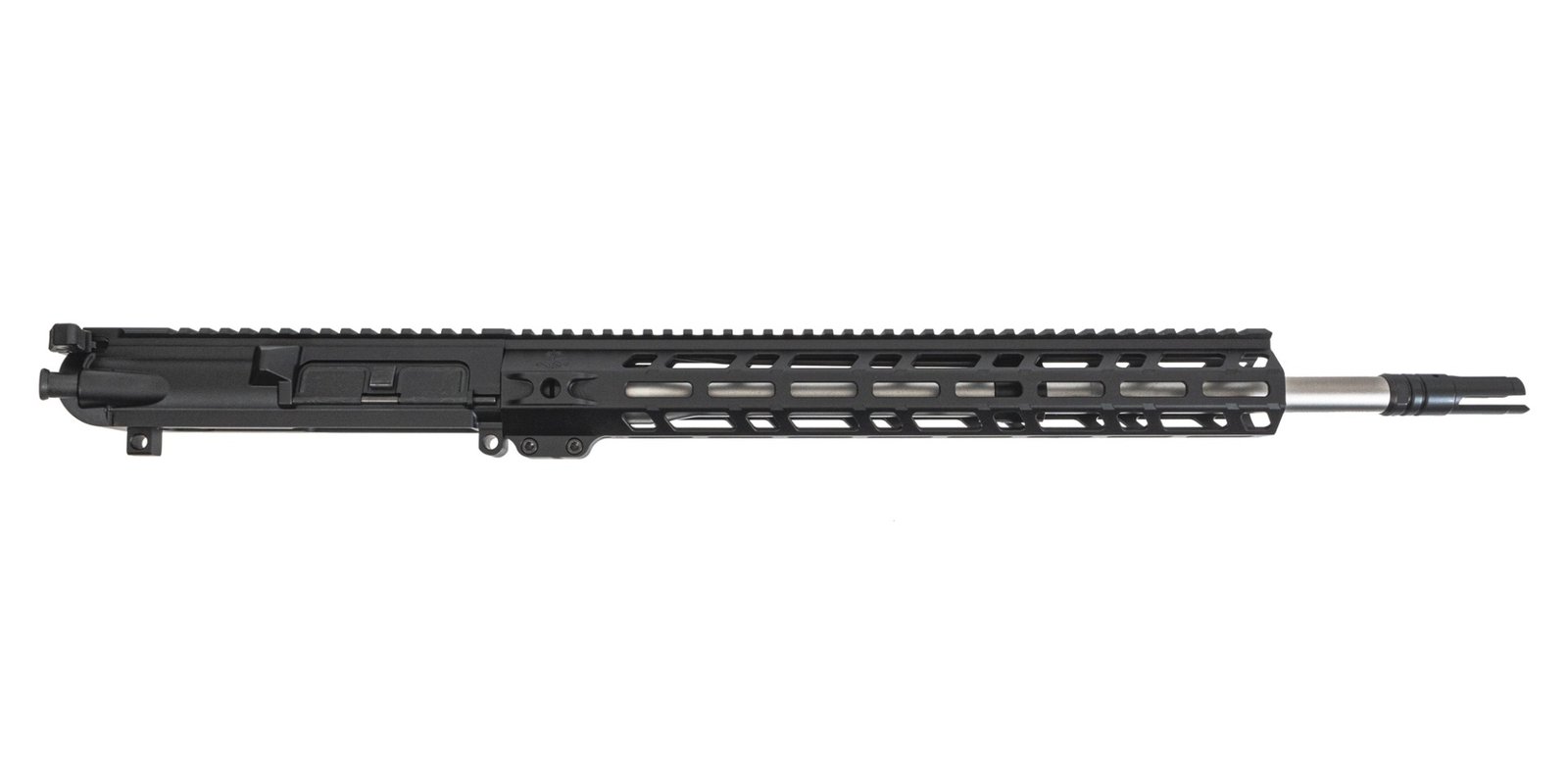 Barrel: 18" 416R. Chambered in 6.5 Creedmoor, 1:8 twist, and a mid-length gas system. Barrel is finished off with a 15"Sabre rail, a Sabre Compensator, and Cerakote Finished.