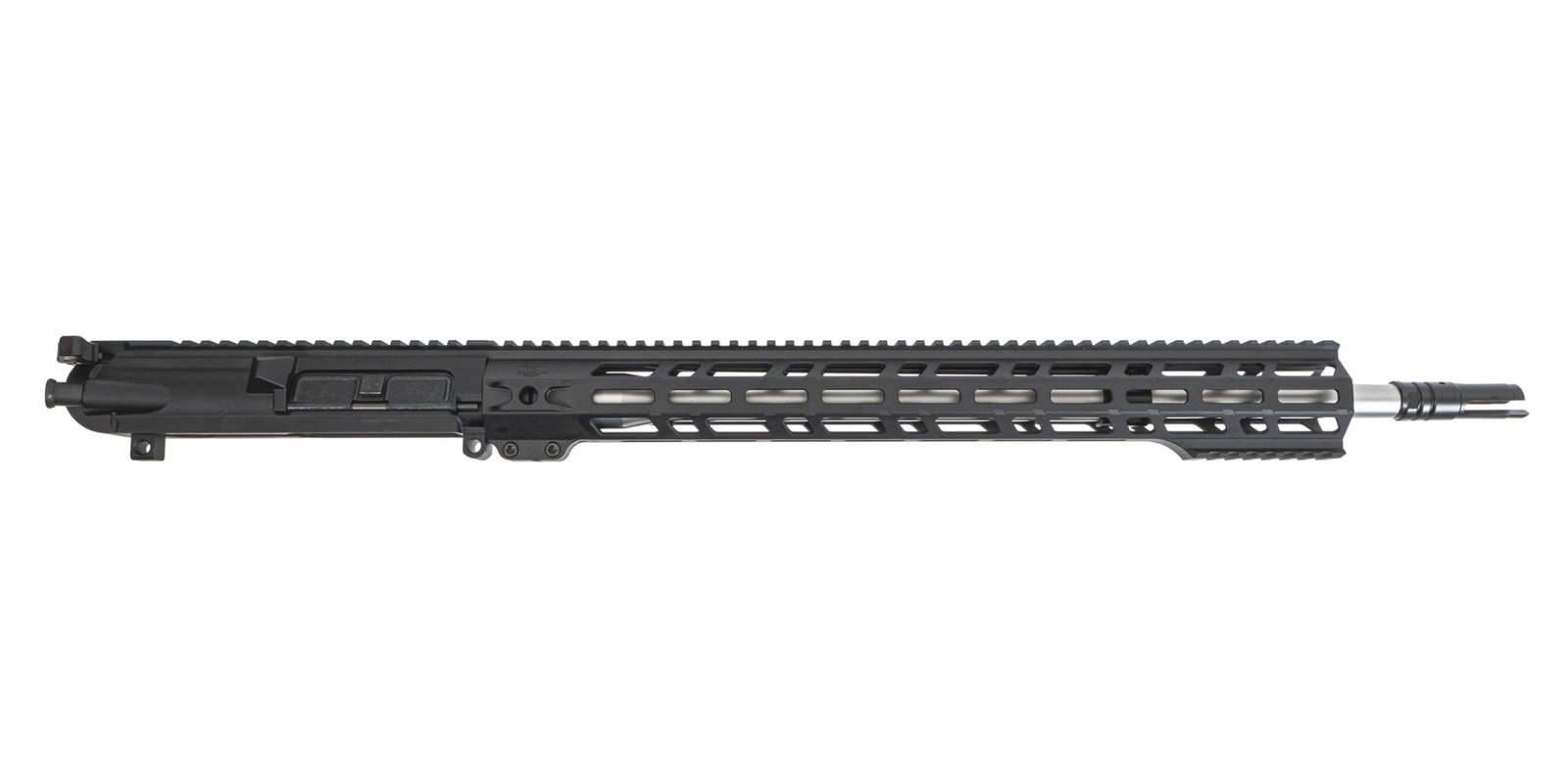 Barrel: 20" 416R. Chambered in 6.5 Creedmoor, 1:8 twist, and a Rifle-length gas system. Barrel is finished off with a 18"Sabre rail, a Sabre Compensator, and Cerakote Finished.