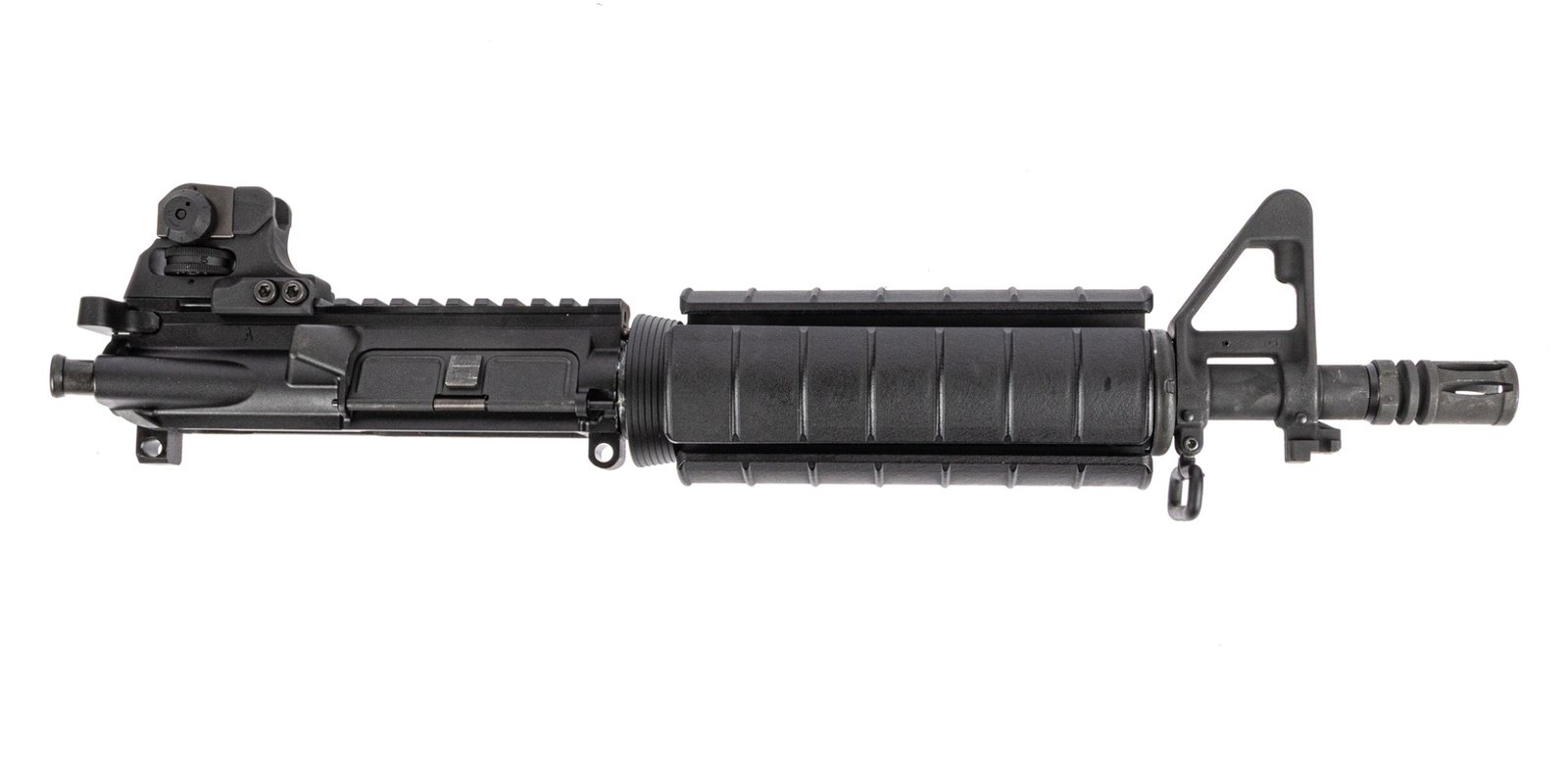Barrel: 10.5" barrel chambered in 5.56 NATO with a 1/7 twist, M4 barrel extension, and a carbine-length gas system. Barrel is finished off with an F-marked front sight post, quad rail handguard with rail covers, and an A2 flash hider.This barrel is made especially for Palmetto State Armory by FN Manufacturing using their proprietary blend of hammer forged chrome molly vanadium that is referred to as "Machine Gun Steel" by virtue of its use in FN's M249 and M240 weapons. The hammer forging process work hardens the steel, making it more durable. In addition, the chrome process for the bore allows for a lining almost twice as thick as a standard M16 for enhanced durability.Upper: Forged 7075-T6 A3 AR upper is made to MIL-SPECS and hard coat anodized black for durability. These uppers are T-Marked engraved. Upper includes Rock River Arms A2 Rear Sight.Bolt Carrier Group: Father's of Freedom BCG by Microbest with Sprinco Extractor Spring and Carpenter 158 MP Bolt.