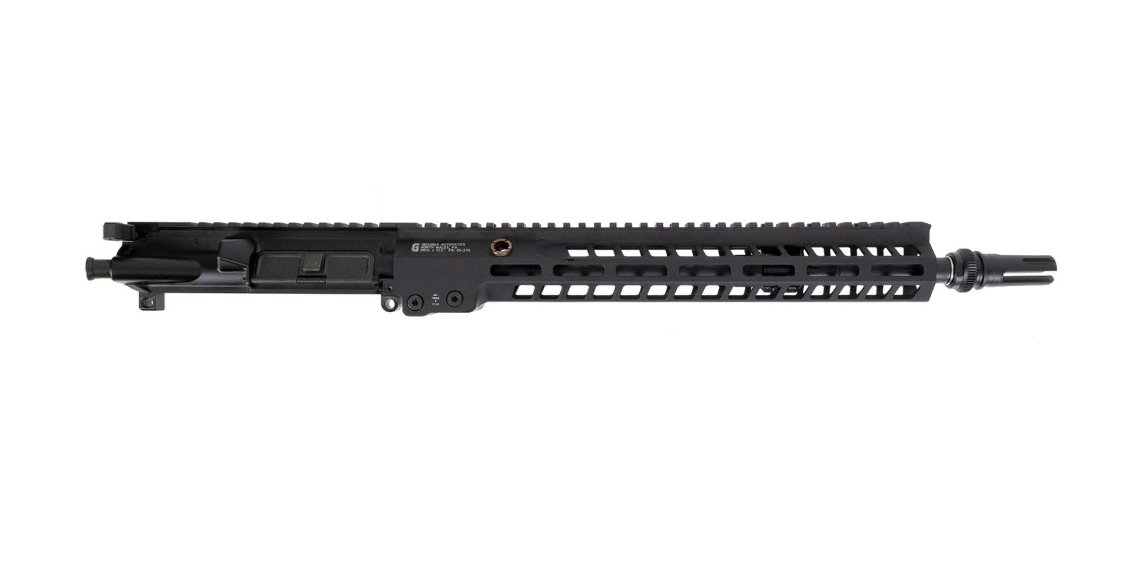 Barrel: 14.5" barrel chambered in 5.56 NATO, 1:7 twist, M4 barrel extension, and a mid-length gas system. Barrel is finished off with a GEISSELE 13.5" SUPER MODULAR RAIL MK14 M-LOK, and a AAC 51T pin and weld muzzle device.