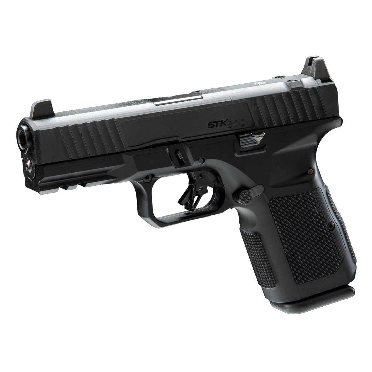 The STK200 is a compact 9mm semi-automatic pistol that combines sleek design with powerful performance. Featuring a 4 inches barrel, this pistol delivers exceptional accuracy in a highly maneuverable form. Its ergonomic design ensures a comfortable grip, allowing for better control and a more enjoyable shooting experience. Constructed with lightweight materials, the STK200 is easy to handle and carry, making it an ideal choice for both personal protection and recreational shooting. Whether you're at the range or relying on it for everyday carry, the STK200 offers versatility, reliability and precision, all in a compact and stylish package.