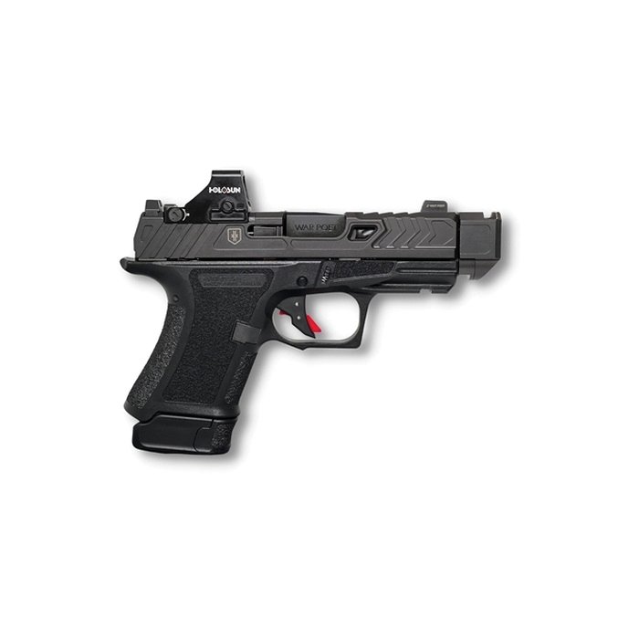 Equipped with a flat-face trigger and a striking red trigger shoe, this firearm enhances both performance and aesthetics