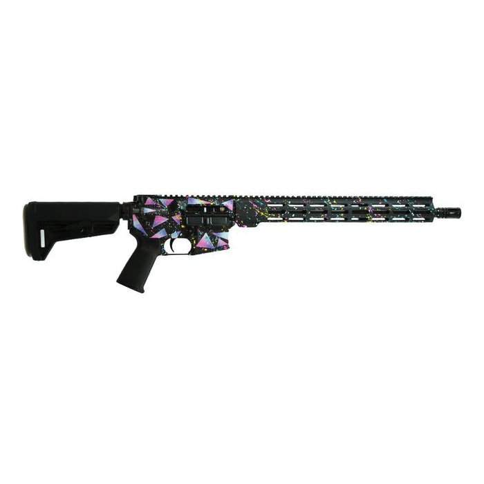The "Retro Miami" AR-15 is engineered for exceptional durability and precision, making it a standout choice for any shooting enthusiast. At the heart of this rifle is a 4150 CMV Melonite barrel, renowned for its resilience and accuracy. Featuring a 1/7 twist rate, this barrel is perfectly suited for stabilizing a wide range of bullet weights, enhancing versatility in ammunition selection. Designed for enhanced reliability and performance, the rifle incorporates M4 feed ramps and a carbine gas system with a low-profile gas block. This combination ensures smooth operation and dependable cycling, regardless of the conditions. The design also includes an A2 Flash Hider and a 1/2-28 threaded muzzle, allowing for easy attachment of various muzzle devices to tailor the rifle to your preferences. The "Retro Miami" AR-15 features a spacious 15 inches MLOK handguard, providing ample flexibility for mounting accessories, whether you're adding lights, grips or optics. Its dry film-lubed 7075 T6 forged upper boasts T-markings and includes a forward assist and ejection port assembly, ensuring durability and ease of use. The lower receiver is also forged from robust 7075 aluminum, creating a solid foundation for this exceptional rifle. With its blend of modern features and reliable construction, the "Retro Miami" AR-15 is perfect for tactical applications, recreational shooting and everything in between. Experience precision and reliability with a rifle designed to meet the demands of today's shooters.