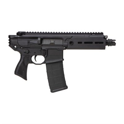 The MCX Rattler was originally designed at the request of the US Special Operations Command, who needed a new Personal Defense Weapon (PDW) to replace the MP5. It features a groundbreaking design that takes largely based on Sig Sauer's renowned MCX modular rifle platform, which utilizes a short-stroke recoil gas piston operating system. What separates Sig Sauer's MCX platform from other AR/M4 style rifles is the recoil system that totally eliminates the need for a buffertube, making the MCX Rattler more compact than any AR/M4 rifle ever produced. In the place of a buffertube, the MCX Rattler Pistol features a small picatinny rail, allowing accessories such as folding rifle stock Mfg: Sig Sauer, Inc.