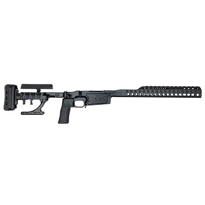 The SPUHR Ideal Chassis System was designed around the concept of modularity, stability, innovation, and quality. Machined from aircraft aluminum, the SICS offerens and extremely ridig shooting platform that also offers tons of modularity and toolless adjustments on the fly. Featuring quick-adjustment Length-of-pull, the SICS allows users to instantly adjust LOP when shiftin from one shooting position to the next. The 16" Forend features a full Arca-Swiss (RRS Dovetail) rail for use with bipods, tripods, and other accessories. The Chassis also features tons of Spuhr Interfaces throughout. The grip is adjustable fore and aft for a perfect fit between the shooting hand and trigger Mfg: Spuhr