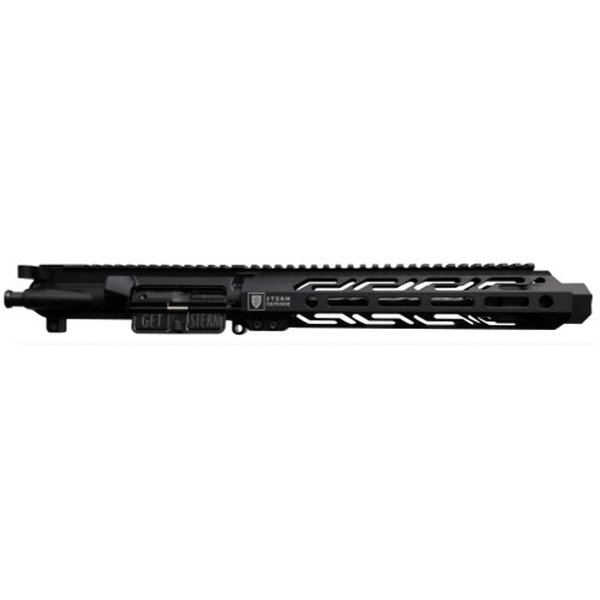 The free float M-LOK handguard from Stern Defense combines lightweight construction with exceptional durability, delivering superior ergonomics for any shooter. Designed to accommodate your favorite attachments, this M-LOK compatible handguard ensures versatility without sacrificing strength. A secure clamp-on mounting system keeps it firmly in place, even under the stress of heavy use, sustained full-auto fire or shooting prone from a bipod. Constructed from 6061 aircraft-grade aluminum and hard-coat anodized for longevity, it also features integrated quick-disconnect swivel holes for enhanced functionality. For those looking to build a custom dedicated 9mm AR-15 upper, Stern 9mm barrels provide a distinct advantage over the competition. Engineered with a deeper throat and longer free bore, these barrels accommodate bullets with a longer ogive, eliminating issues where some defensive rounds jam into the rifling before fully chambering. By addressing this common problem, Stern Defense barrels prevent malfunctions that could leave a round stuck in the chamber and require manual clearing. The Mil-Spec flat top upper receiver includes a Stern Defense laser-engraved dust cover and forward assist. Precision-machined from 7075-T6 aluminum, hard-coat anodized for durability and finished with Mil-Spec dry film lube in the bore, this receiver is built for reliability. A Mil-Spec AR-15 charging handle, laser-engraved with the Stern Defense logo, enhances ease of use with an ergonomically designed latch that ensures a secure grip for effortless one-handed manipulations in high-pressure situations. The Stern Defense bolt assembly is built from 8620 AISI steel with a Mag-Phosphate finish, providing seamless compatibility with Mil-Spec and Glock-pattern upper receivers. Designed to function with both Colt SMG and Glock magazines, this bolt works flawlessly with standard AR-15/M16 charging handles. It arrives fully assembled with all sub-components, including a firing pin, spring, retaining pin, extractor, extractor spring and proprietary center and roll pins, ensuring smooth and consistent operation. Completing this build is a uniquely designed blast can, engineered for shooters who want to redirect muzzle gases and blast away from themselves while maintaining a streamlined aesthetic. Machined from 6061 aircraft-grade aluminum billet and hardcoat anodized, this blast can seamlessly integrates with the handguard, measuring 3.25 inches in length and 1.30 inches across its widest point. Every component in this package is crafted for peak performance, durability and reliability, making it the ultimate upgrade for any firearm enthusiast.