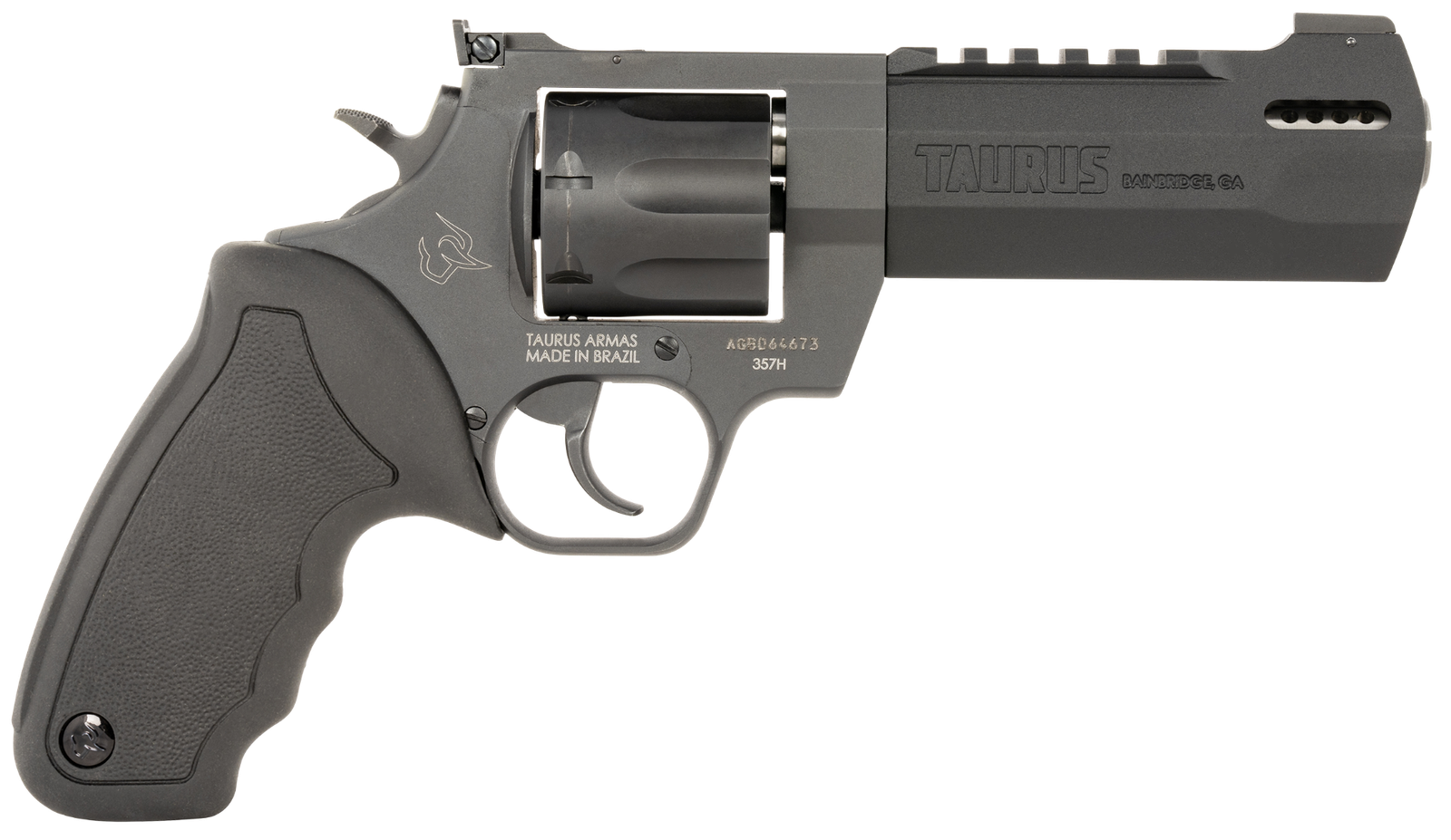 Winner of the 2019 American Hunter handgun of the year Golden Bullseye Award, the Taurus Raging HunterT is a next generation, big bore revolver that's first in innovation and built to last. A fun and effective alternative for short to medium range hunting scenarios, this 357 Magnum, 7-shot revolver. Its revolutionary angular barrel design cuts down on overall weight, while its factory tuned porting and gas expansion chamber reduces muzzle lift for quicker target acquisition. Cushioned insert grips ensure a comfortable, controllable shooting experience.