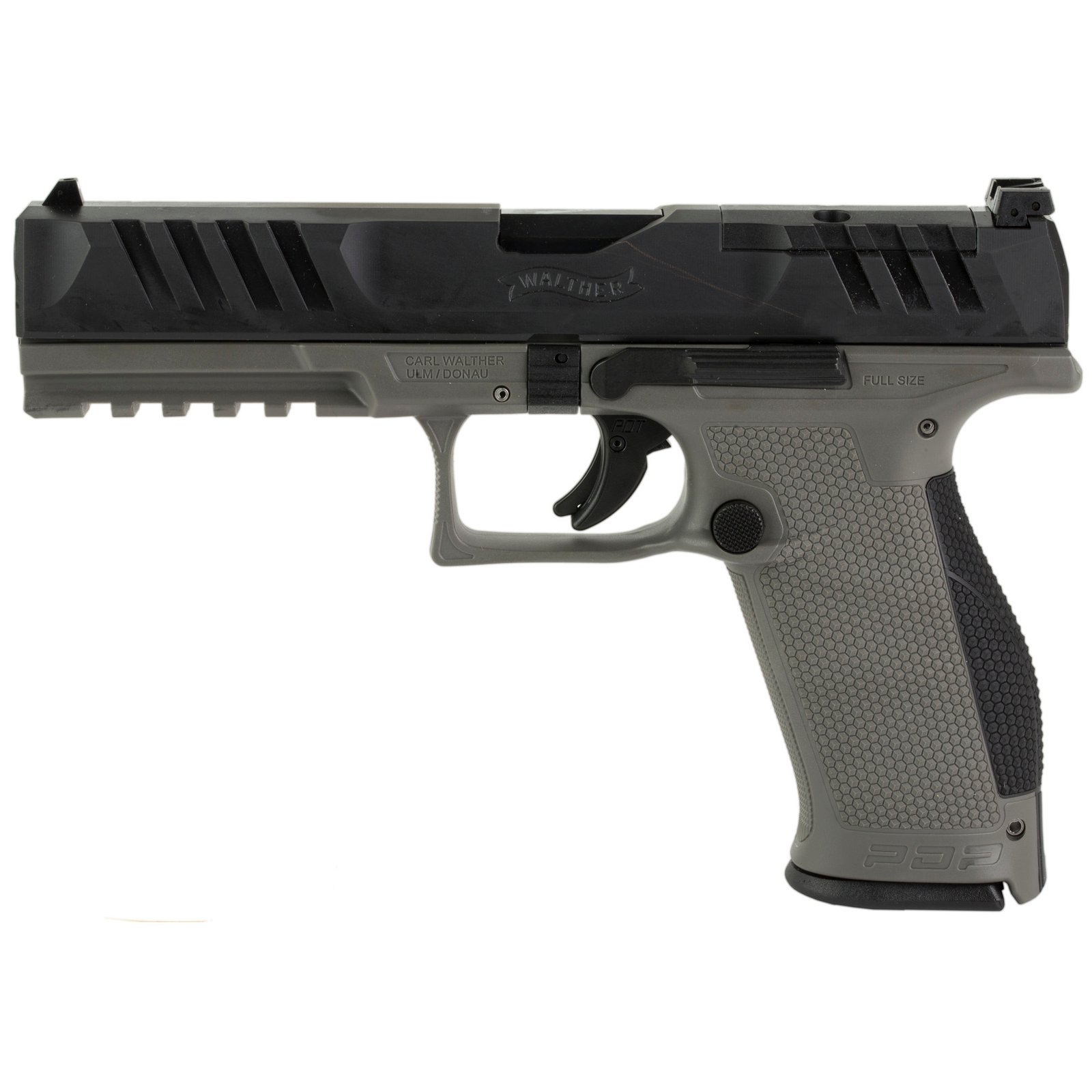 Walther PDP 9mm Pistol, 5" Barrel, Adjustable Rear Sights, Black, Gray – 2858401